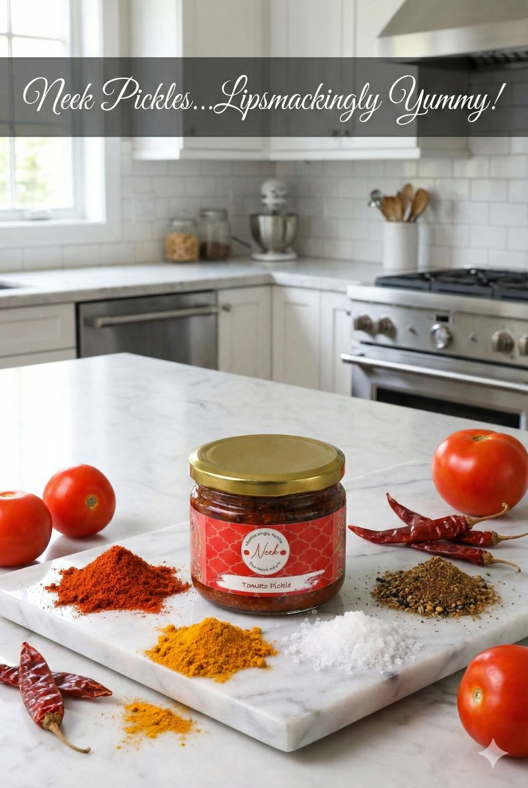 Neek Tomato Pickle is a unique Mithila delicacy, prepared using a traditional method rarely seen outside the region. It is made from: