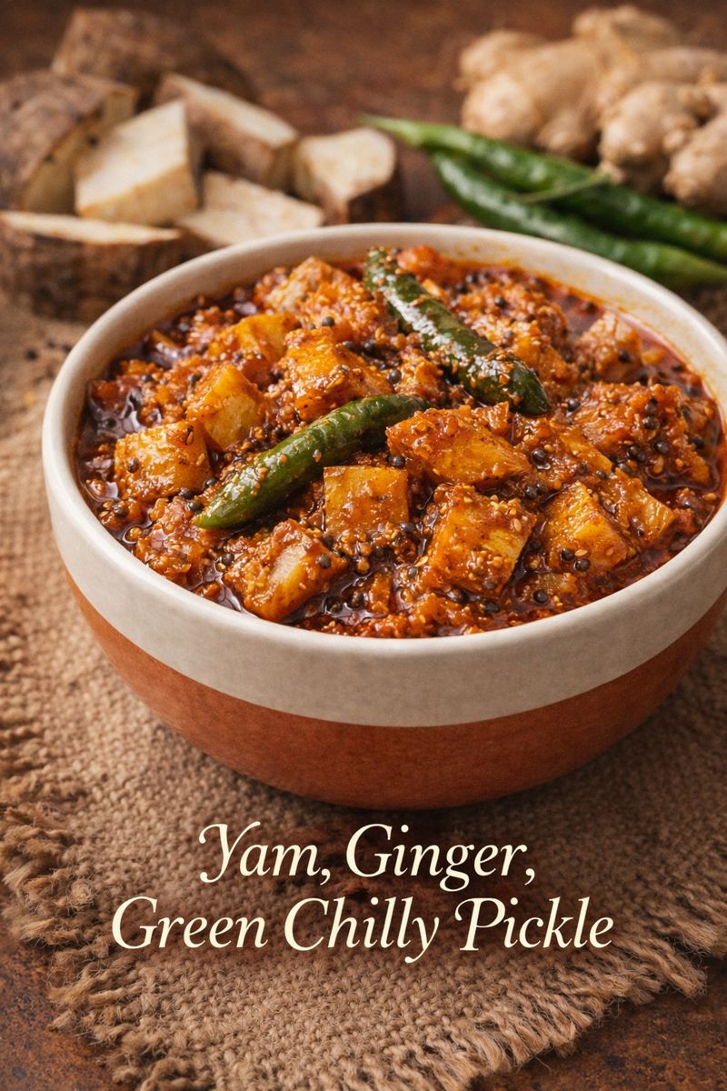 In the kitchens of Mithila, Bihar, pickling is not merely a technique—it is a way of life. Among the region’s most distinctive and bold creations is the Neek Yam–Ginger–Green Chilly Pickle, a powerful yet deeply likeable delicacy that showcases Mithila’s mastery over spice, balance, and preservation.
