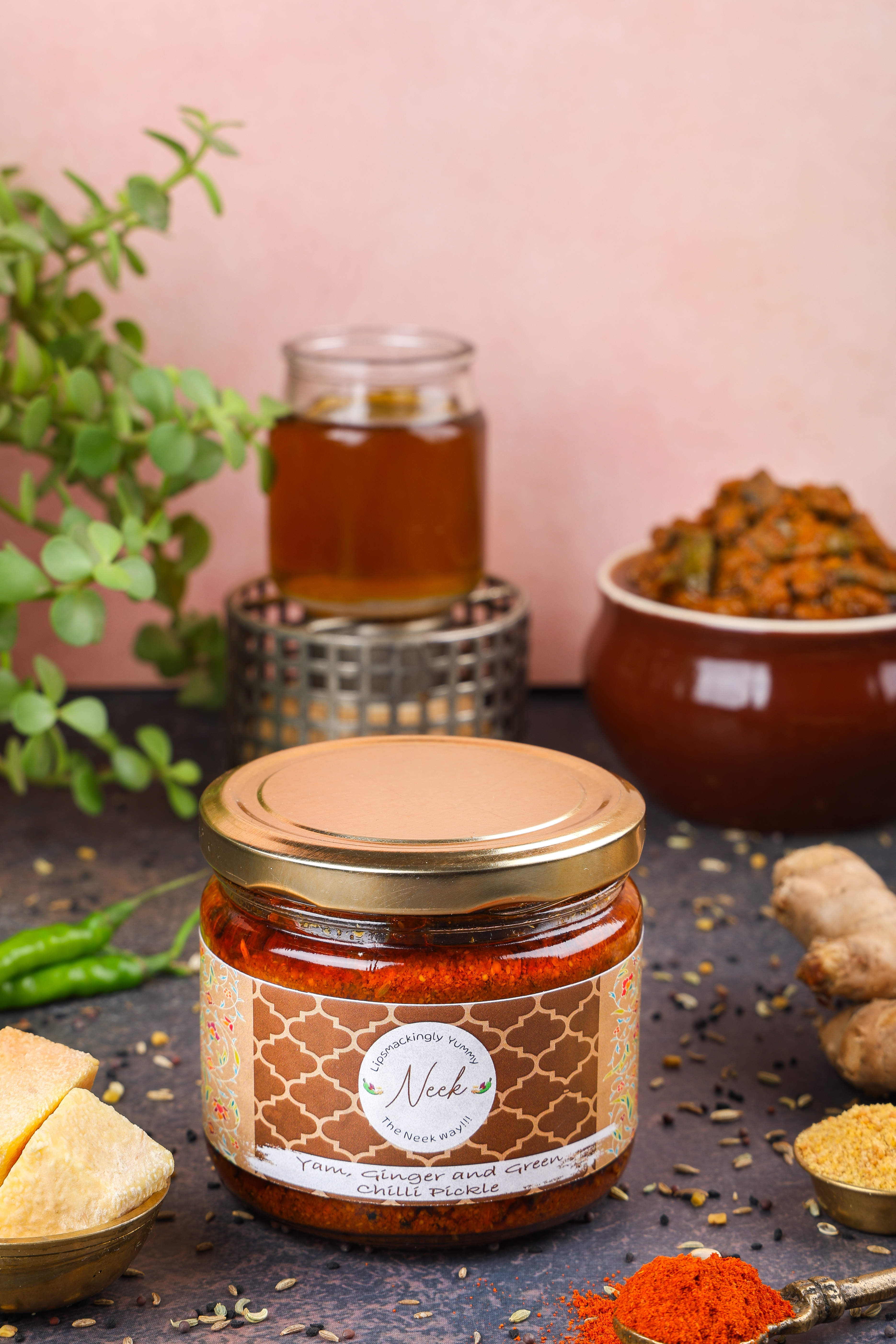 True to Mithila’s age-old wisdom, this pickle is preserved without artificial methods. When stored properly and kept away from direct contact with water, Neek Yam–Ginger–Green Chilly Pickle boasts a shelf life of 5–10 years. Over the years, the mustard oil mellows the heat while the spices deepen, making the pickle richer and more rounded.