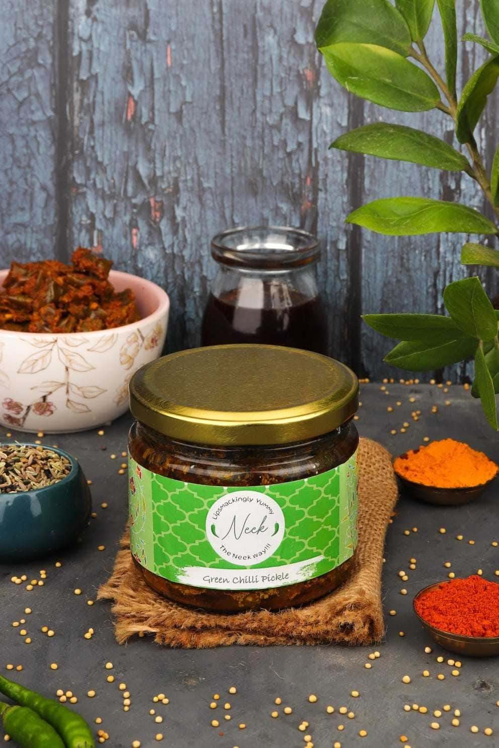 The NEEK Green chili pickle is an authentic and homemade pickle that is rich in taste and health benefits too. It has been prepared completely hygienically using fresh raw materials and the right spices. The main ingredients used in making the green chili pickle are green chilies, salt, turmeric powder, red chilly powder, yellow mustard powder, five spices, vinegar, and a generous amount of mustard oil. It can be paired best with chapatis, pooris, and paranthas. This pickle does not use preservatives, but synthetic vinegar in it’s place. The shelf life of this pickle is 5 years.